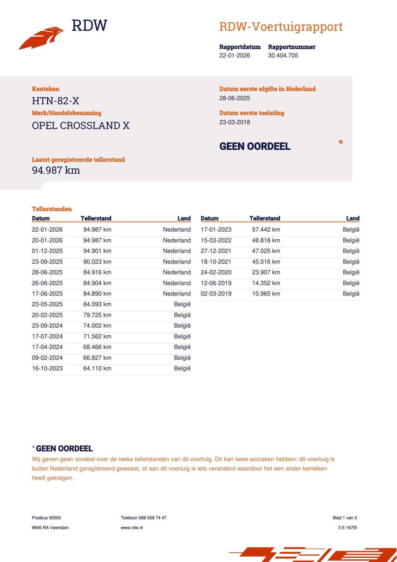 De kilometerstand is logisch en aantoonbaar via het Carfax-rapport en het RDW tellerrapport met logisch oplopende kilometerstanden, gebaseerd op zowel de Belgische Car-Pass als de Nationale Autopas.